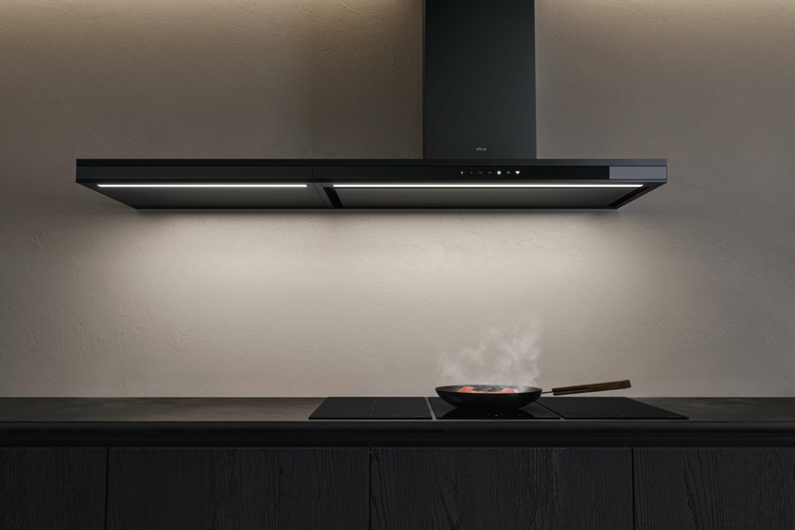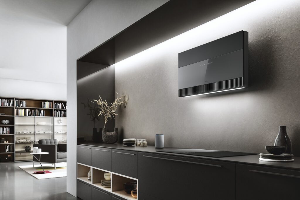 La seconde, “Connectivity”, concerne la connectivité Wi-Fi des hottes, qui peuvent être pilotées à distance via l’application Elica ou par commande vocale. D’après les communicants de la marque, cette interface permet de gérer la puissance d’aspiration, l’éclairage, mais aussi le suivi de l’entretien, avec des notifications liées à l’état des filtres et un accès direct à l’assistance. Ils soulignent également un intérêt fonctionnel en matière d’hygiène et de préservation des surfaces, le pilotage à distance limitant les contacts directs avec les appareils.