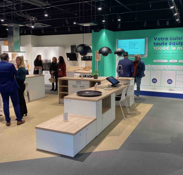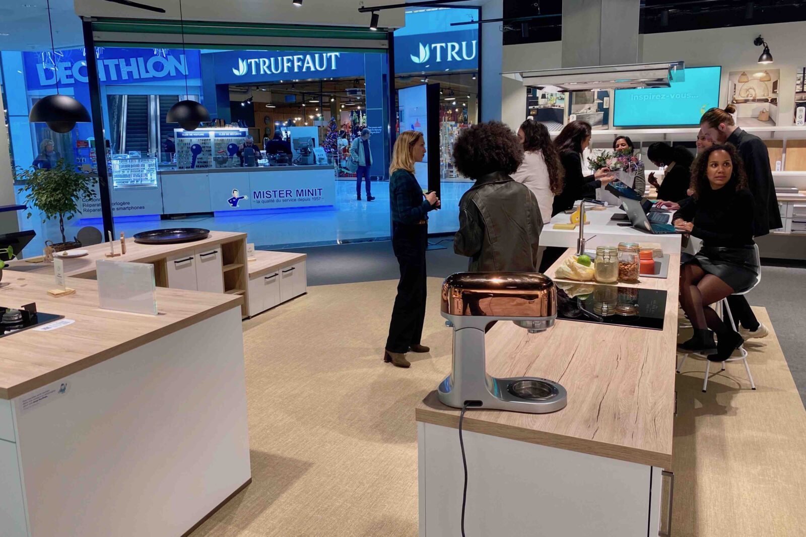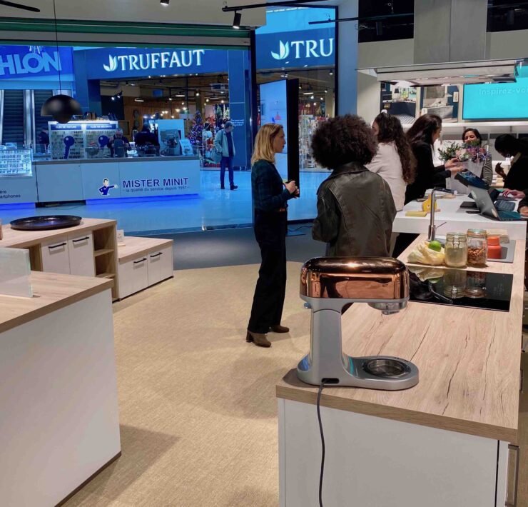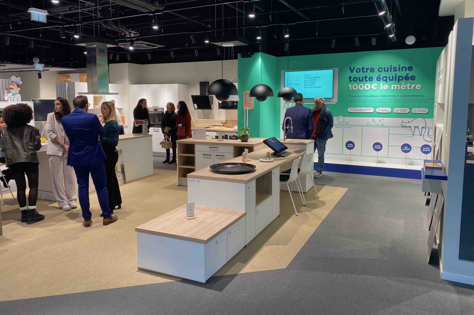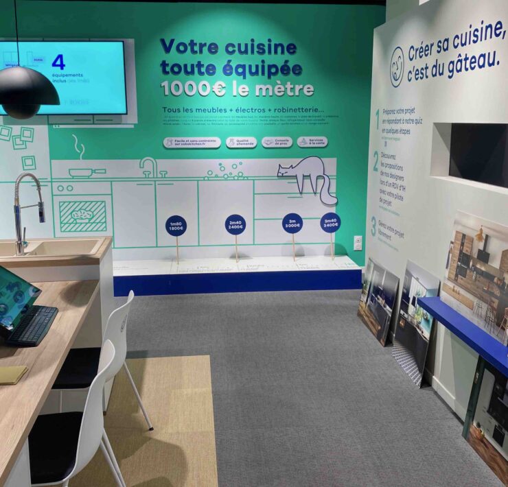 Autre originalité (et pas des moindres !) : l’implantation du concept. En effet, dans sa stratégie de développement, Cake Kitchen choisit des lieux « dans des zones de shopping naturel », tels que les grands centres commerciaux ou les centres-villes et non plus en zones commerciales. Anti-showroom, extra-fluide, simple : dans sa volonté revendiquée de concentrer « le meilleur des deux mondes » (le digital et le magasin), le point de vente type a été pensé comme un lieu de pédagogie, permettant de découvrir l’approche Cake Kitchen ; mais aussi comme un atelier de création, pour permettre à ceux qui ont déjà un projet en cours, de venir l’optimiser, dans une approche collaborative avec les experts de la marque. « Chez Cake Kitchen, résume le groupe, les points de vente n’ont pas été pensés comme des magasins traditionnels. Véritables lieux expérientiels, ils ont pour vocation d’offrir aux clients une expérience complémentaire à celle vécue en digital. Avant tout accueillants et conviviaux, ils cherchent à aider tous ceux qui ne franchiraient pas la porte d’un cuisiniste traditionnel (mais qui ne veulent pas pour autant faire leur cuisine seuls), à sauter le pas, en toute simplicité ».