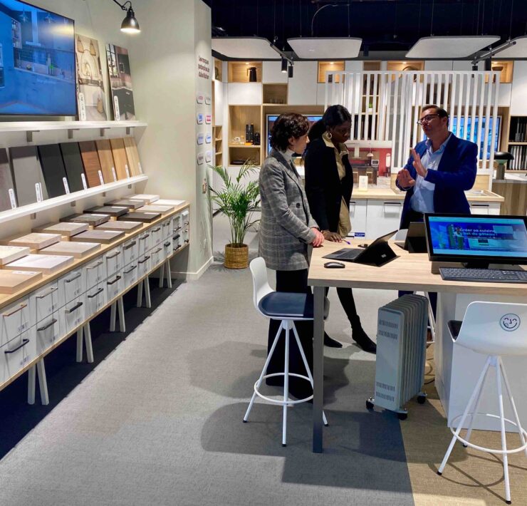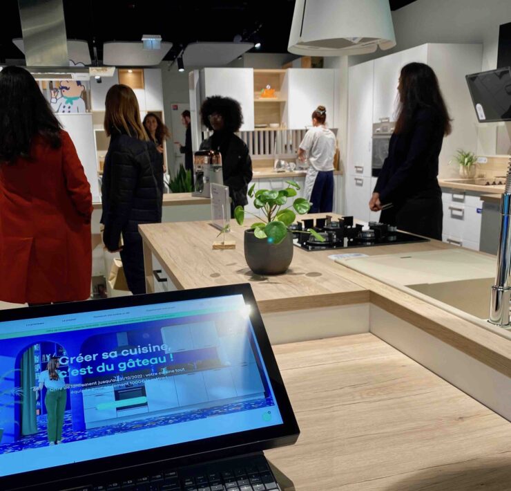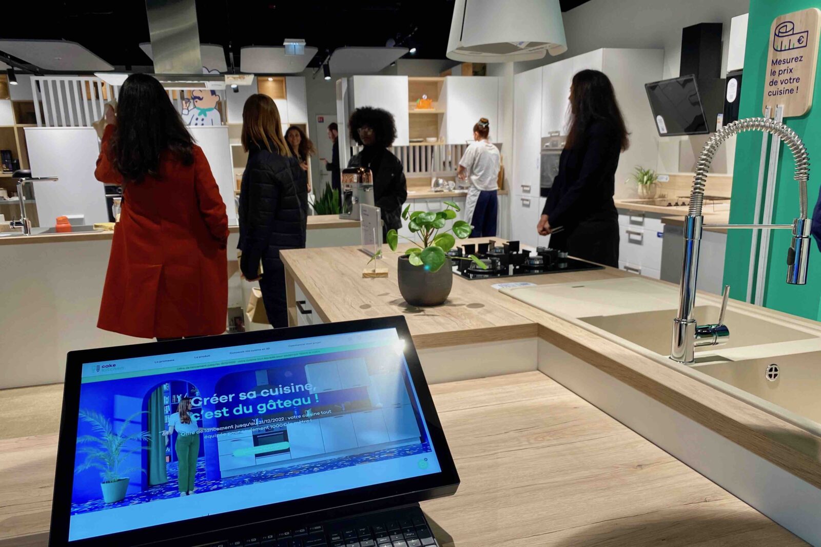 On l’aura compris, avec Cake Kitchen, les clients peuvent créer et acheter leur cuisine en magasin ou à distance. Ce nouveau parcours client est rendu possible grâce à une interface digitale qui donne accès à un ensemble d’outils tels qu’un “quiz projet” (pour exprimer les besoins et les attentes) et un espace “perso” (pour suivre l’intégralité du projet, retrouver un ensemble de documents, ou échanger avec son “pilote de projet” personnel). L’interface propose également un outil de conception 3D en libre accès, qui permet à ceux qui le souhaitent, de commencer à dessiner eux-mêmes leurs premières idées. Un rendez-vous d’une heure (en magasin ou à distance) est proposé à la suite du “quiz projet” complété par les clients.