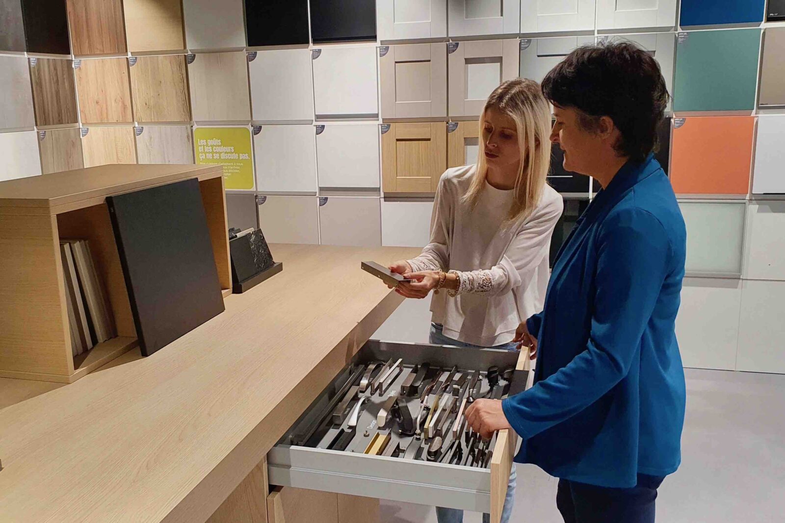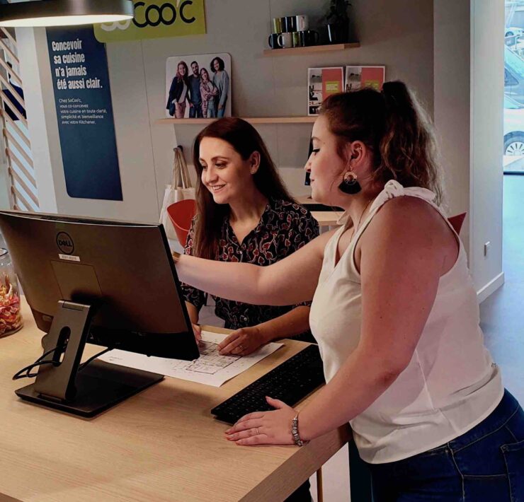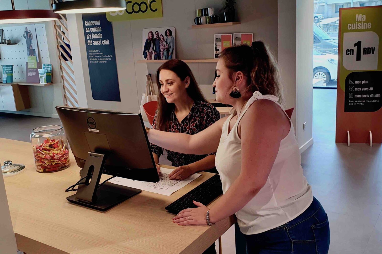 Le nouveau concept décloisonne les différents espaces du magasin pour les rendre plus accessibles et plus ouverts. Tous les espaces sont connectés et visibles à tout moment du parcours. Le magasin sert d’appui pédagogique pour le “Kitchener” (le concepteur-vendeur selon SoCoo’c), qui explique en toute transparence la composition du prix d’une cuisine, notamment ce qui impacte à la hausse ou à la baisse le budget final du client. Dès son premier rendez-vous, le consommateur obtient le plan, les vues 3D et le devis détaillé de sa cuisine.