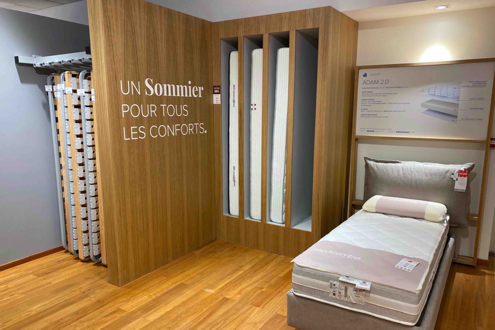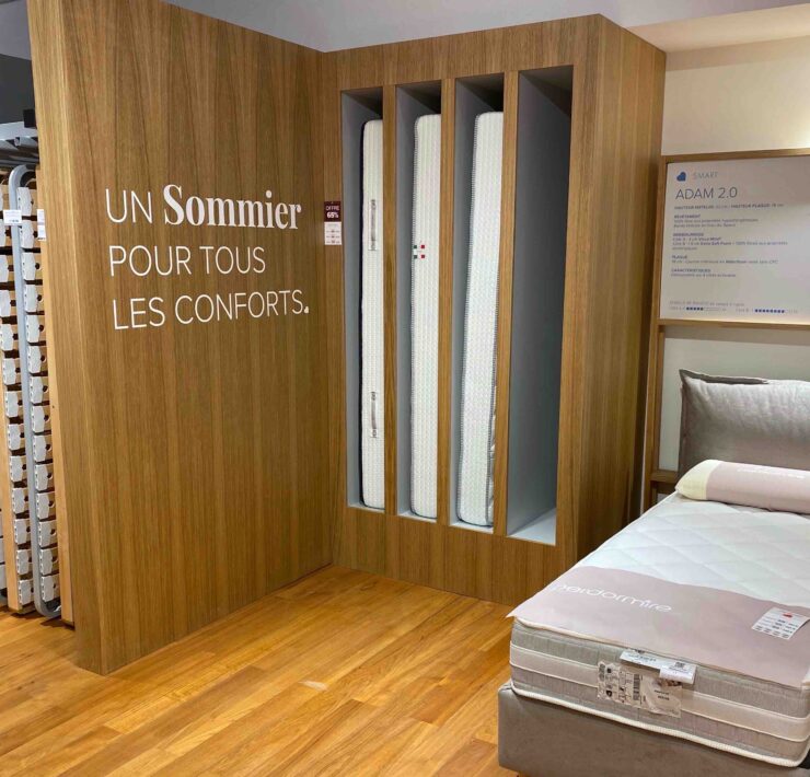 Concrètement, même si le “Directeur France des opérations” concède qu’il y aura encore quelques ajustements, pour répondre à certains goûts typiquement français (« nous travaillons sur ce sujet avec nos collègues du siège, à Pistoia, ainsi que sur les nouveautés »), ce “système de lit” consiste à proposer en magasin des ensembles complets (sommier coffre + matelas + tête de lit), ceci dans quatre collections permettant une montée en gamme progressive (“Basic”, “Smart”, “Smart Plus” et “Premium”), le tout agrémenté d’une possibilité de personnaliser la solution choisie avec, à la clé, 55 modèles de pieds différents et – pour le cadre et la tête – 35 types de tissus et 310 coloris. Positionnement : moyen/haut de gamme, « en ligne avec le panier moyen français ».