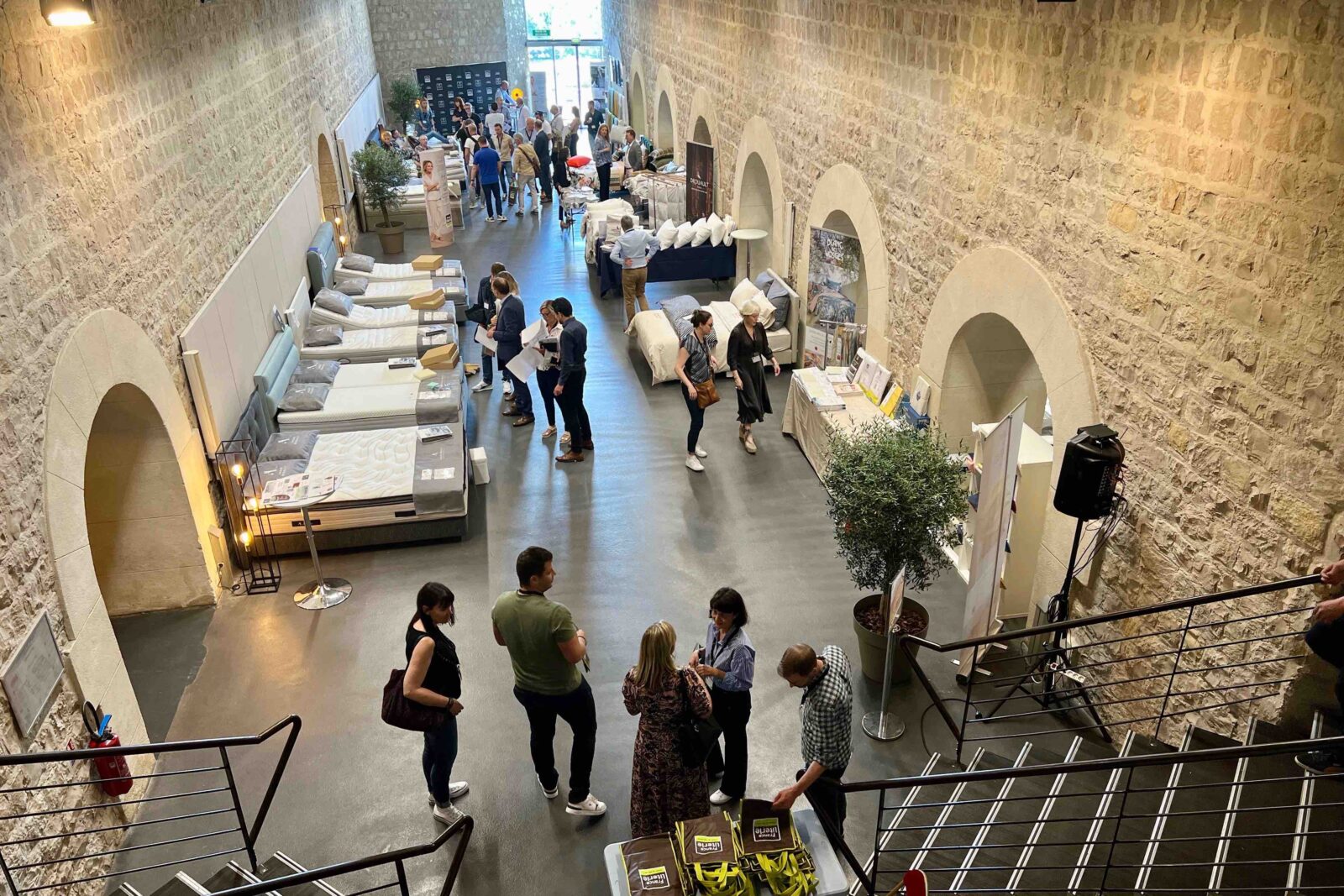 Côté produits, l’offre a d’abord été présentée à la tribune par Maxime Sidot et Annie Munch, acheteuse, puis exposée “grandeur nature” aux concessionnaires après la réunion. Au programme : 18 fournisseurs présents, 38 matelas exposés, 6 convertibles et un espace “boutique” multi-partenaires. Précisons en effet que, si l’événement majeur de ce congrès était sans conteste la révélation du nouvel Espace Prestige et de toutes ses composantes, la stratégie globale de montée en gamme choisie par France Literie va aussi s’opérer au travers d’une offre retravaillée selon quatre axes (look, technologie, confort, conditions d’achat), avec deux objectifs principaux : faire évoluer le rapport qualité/prix des assortiments d’entrée de gamme et effectuer un recentrage des collections, « en améliorant le positionnement tarifaire et en proposant des lignes qui emmènent les équipes vers la montée en gamme ». Et Pierre Weibel de préciser que les marques dites “techniques” (Swissflex, Lattoflex, Tempur, Technogel), non seulement font partie intégrante de cette montée en gamme, mais encore devront-elles être mieux travaillées en magasin que ces derniers temps et repositionnées à l’avant du magasin, pour gagner en visibilité. Enfin côté décorum, signalons ici que le showroom éphémère des fournisseurs avait été monté dans le cadre tout simplement magnifique de “l’Espace Jeanne Laurent”, ensemble de quatre nefs séparées par des voûtes en pierre de taille, à deux minutes à pied du centre des congrès du Palais des Papes, où se tenait la réunion plénière (et la soirée de gala du dimanche 7 mai, sise, elle, dans la non moins magnifique salle des festins du palais pontifical, dite “Grand Tinel”).