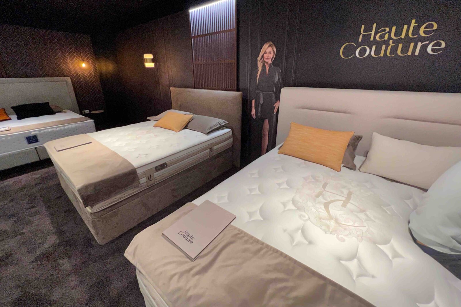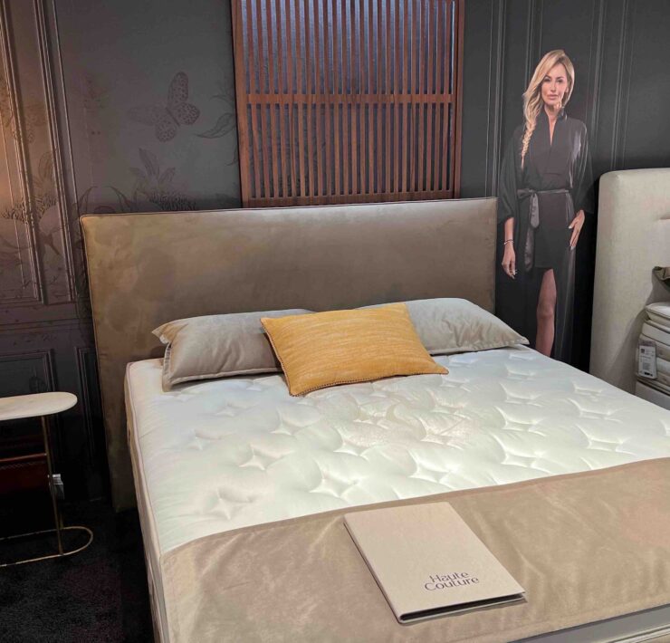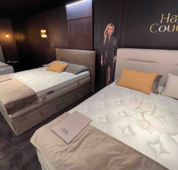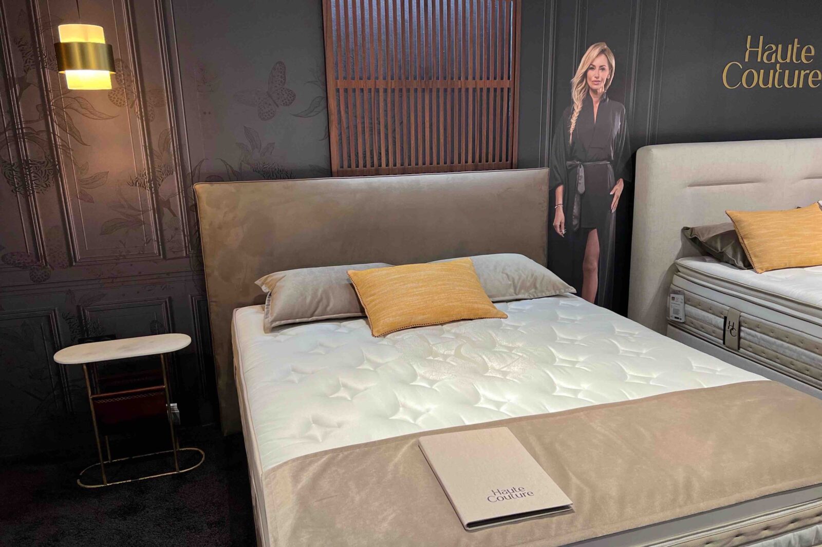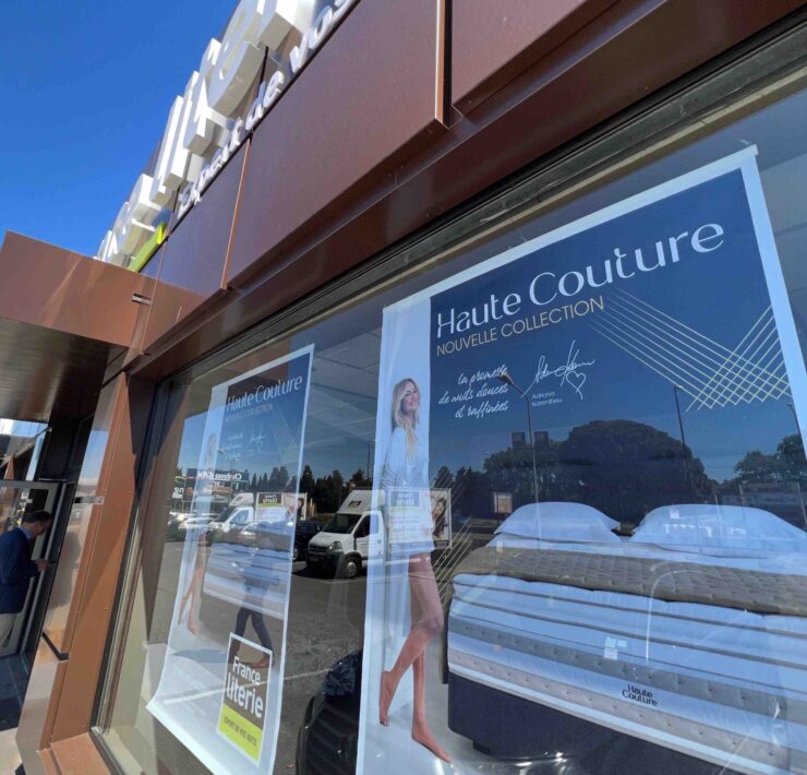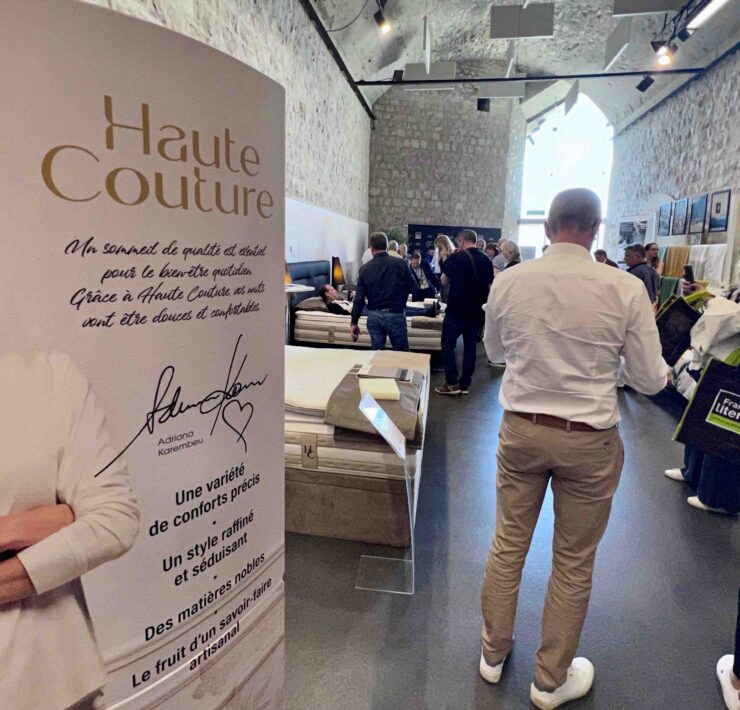 – et, “last but not least”, la collection “Haute Couture”, marque qui existait déjà dans le portefeuille de l’enseigne, mais que France Literie a complètement réinventée, de manière, dixit Maxime Sidot, à proposer « quelque chose qui n’existe nulle part ailleurs ! ». C’est André Renault qui, à l’issue d’un appel d’offre, a été retenu pour fabriquer ce que le directeur opérationnel n’hésite pas à présenter comme une « pépite », dotée d’un « potentiel commercial énorme », qui va apporter à France Literie « des leviers marketing exceptionnels » et, ce faisant, va lui permettre de « marquer les esprits du consommateur et d’afficher notre différence vis-à-vis des autres enseignes ». Tant et si bien qu’Adriana Karembeu, choisie, comme dit plus haut, pour devenir l’égérie de l’enseigne, sera plus spécifiquement (et en toute logique !) associée à cette fameuse gamme “Haute Couture”, dont les trois modèles portent les noms (“prénoms” devrions-nous dire) évocateurs de “Naomi”, “Claudia” et… “Adriana”, bien sûr.