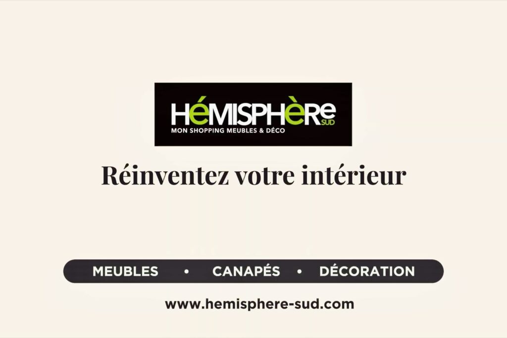 « Meubles, canapés, décoration », pour « toutes vos envies » et « tous vos styles » : avec le slogan « Réinventez votre intérieur », le spot invite les consommateurs à découvrir les collections Hémisphère Sud sur le site de l’enseigne et à bénéficier de conseils personnalisés, en se rendant dans l’un des 34 points de vente que compte à ce jour le réseau en France.