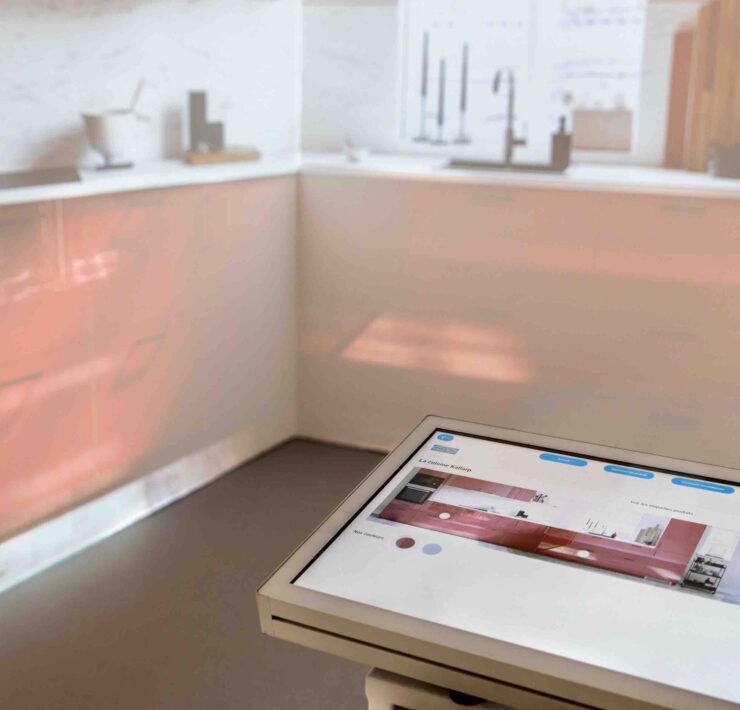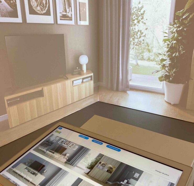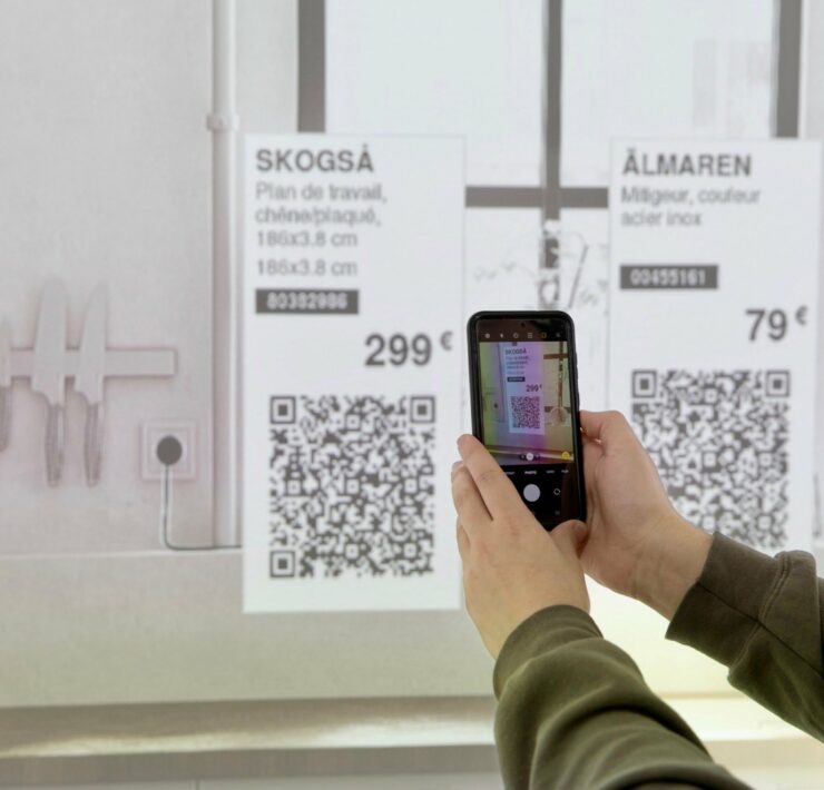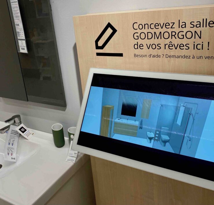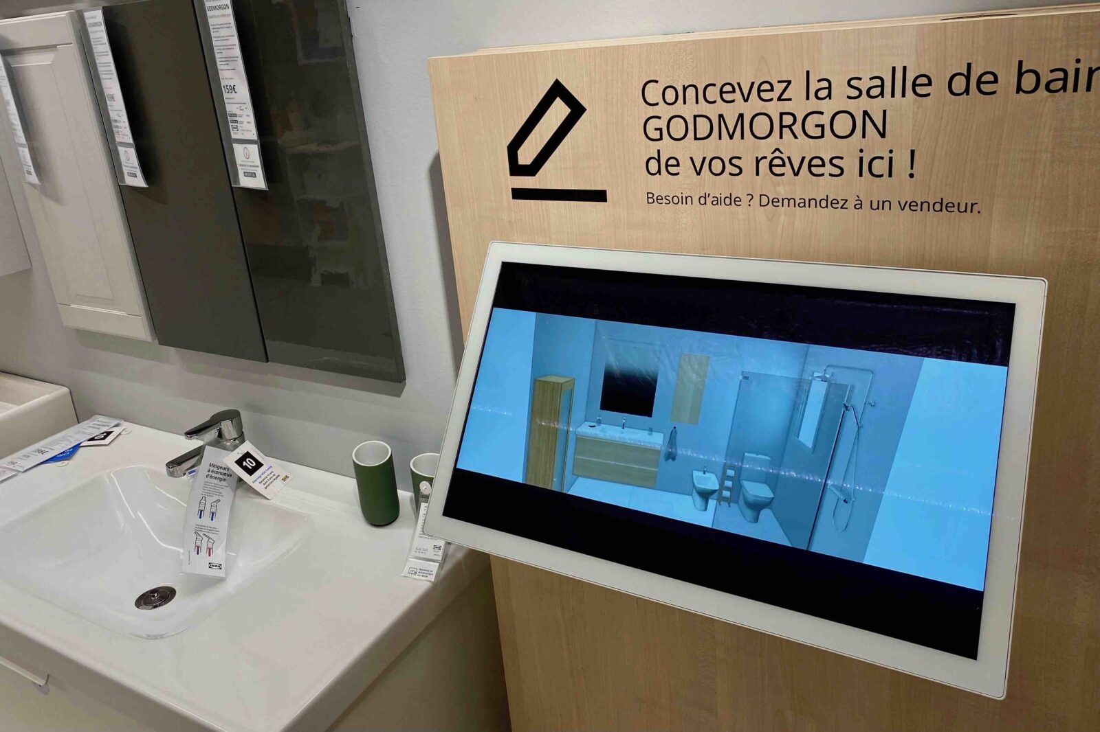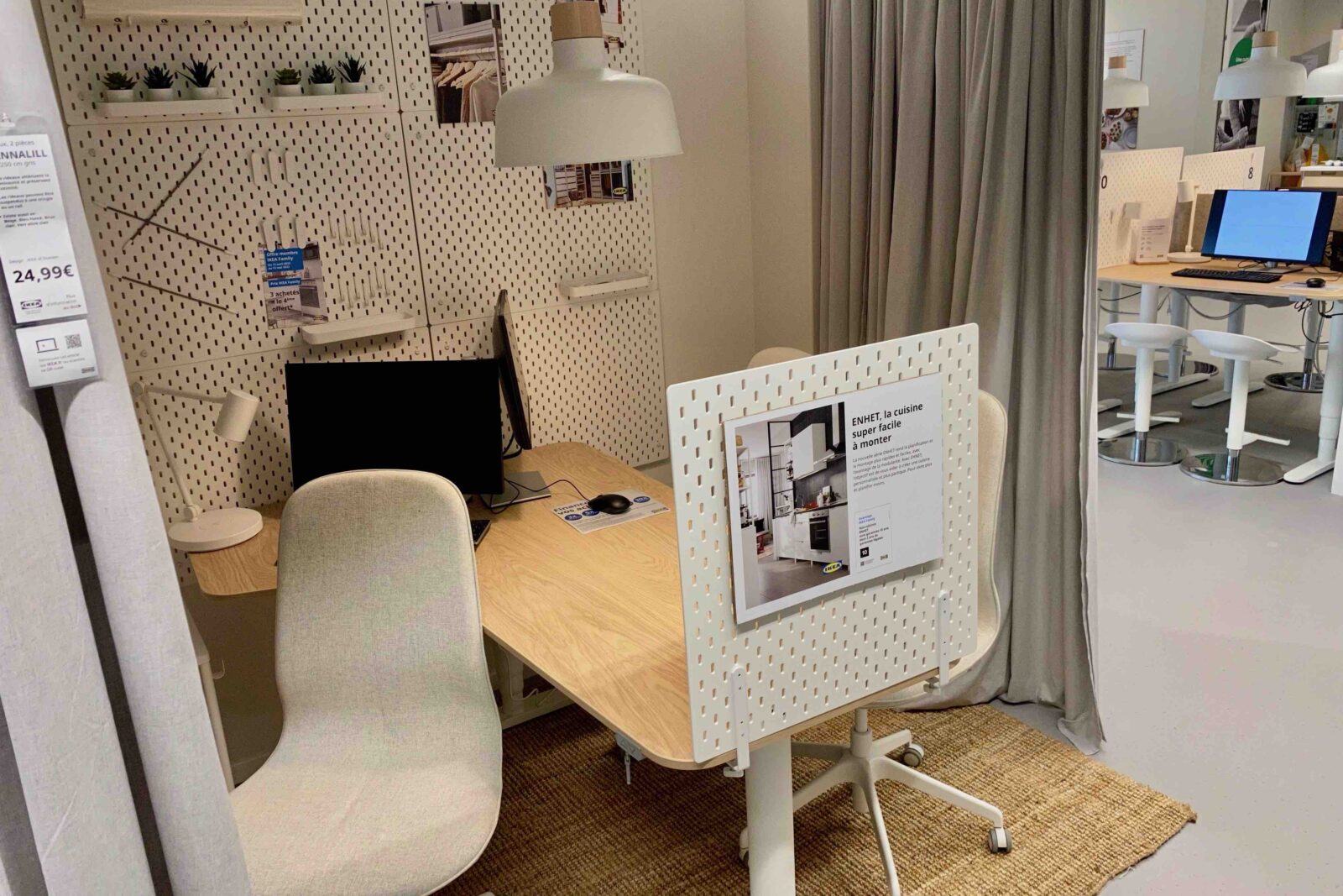 Et en matière d’inspiration, le “clou du spectacle” de ce nouvel “Atelier”, c’est bien sûr “l’Expérience immersive” évoquée plus haut. Grâce à une technologie simple de réalité virtuelle, développée avec la start-up française Ugla (les solutions à partir de lunettes et autres casques n’ont pas été retenues, à la fois pour des questions d’hygiène – le Covid est passé par là – et d’accès simplifié pour tous, notamment les familles), les clients, “immergés” dans un espace de quelque 9 m2, peuvent interagir via une tablette avec 80 ambiances projetées sur trois murs. Ils peuvent aussi afficher les informations des produits de leur choix (prix, matières, QR codes renvoyant – dès leur scan via le smartphone – aux fiches des références correspondantes sur le site marchand “Ikea.fr”), puis les ajouter à leur panier grâce à leur smartphone et l’application Ikea. Objectif de l’enseigne : « Améliorer l’expérience client en effaçant progressivement les frontières entre points de contact physiques et digitaux. »