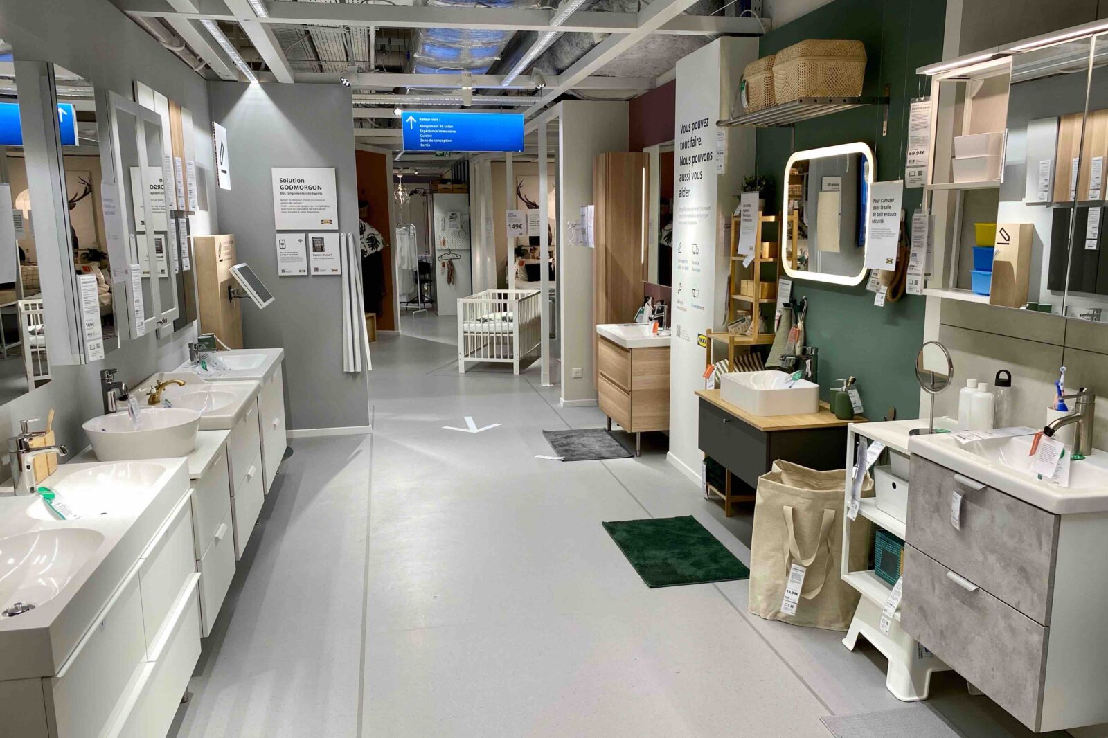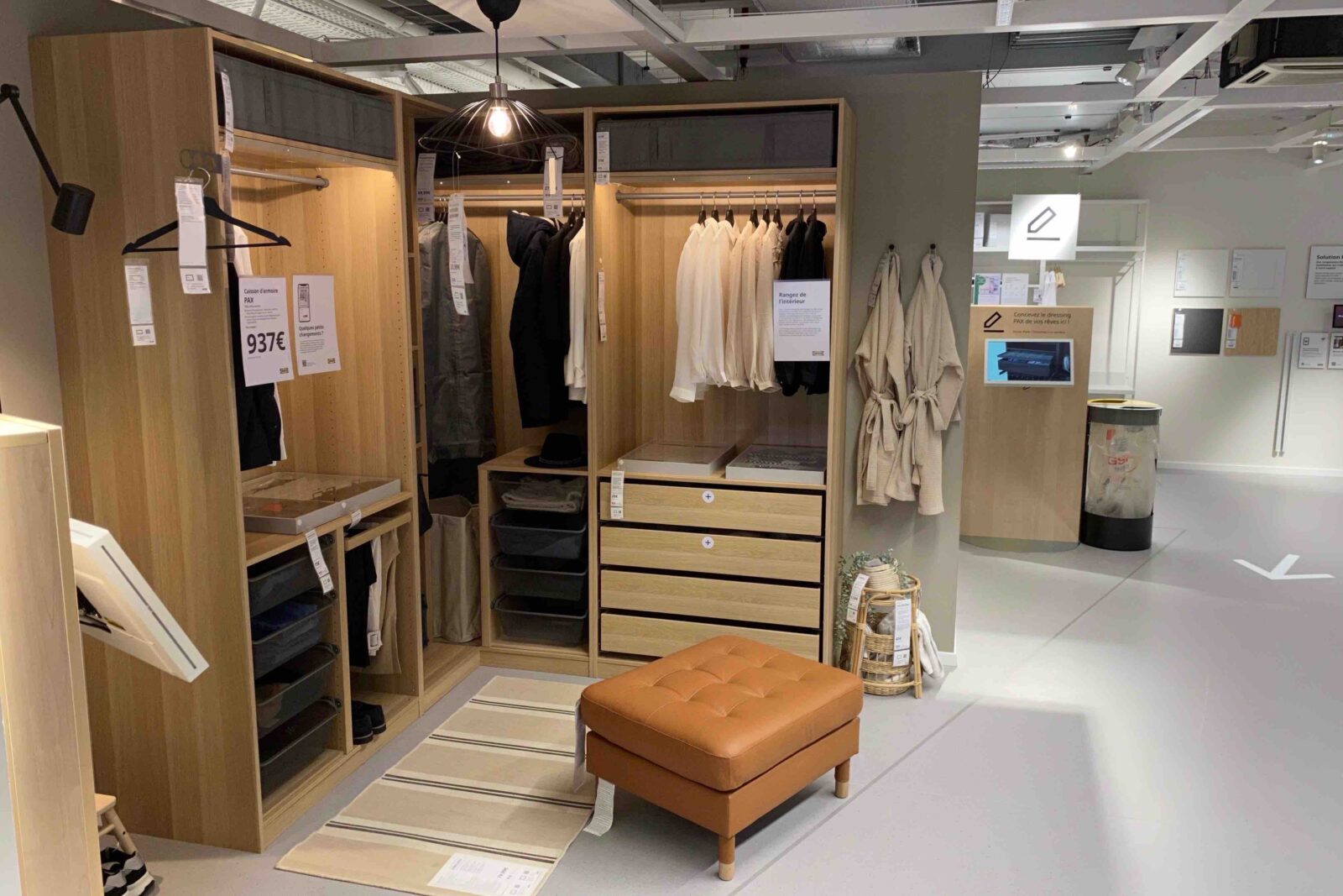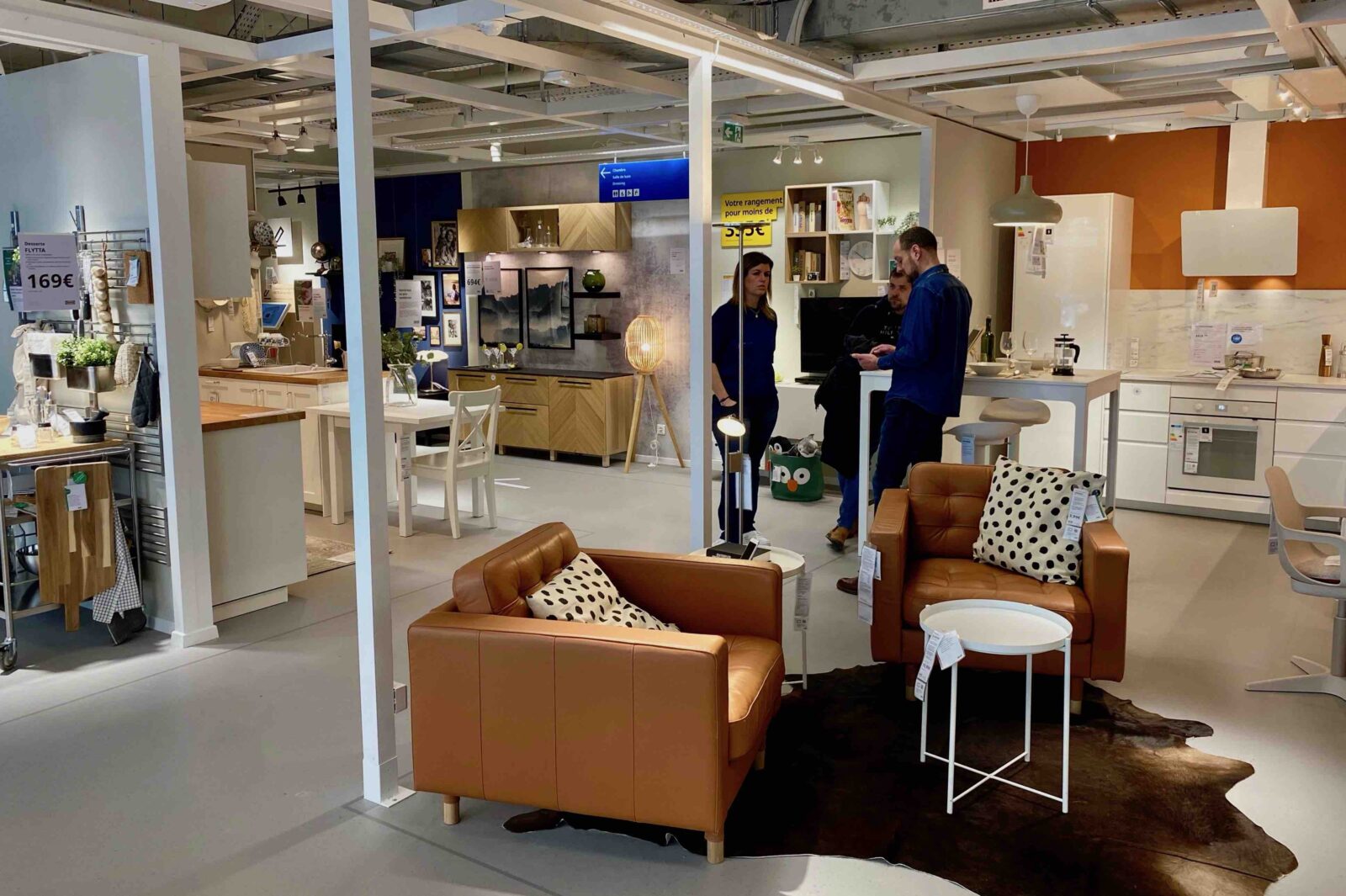 En d’autres termes, cet “Atelier” (ouvert de 10h à 20h, du lundi au samedi et de 11h à 20h, le dimanche) apparaît effectivement comme un espace d’élaboration de projets d’ameublement, accessible en accès libre et/ou sur rendez-vous (réservation en ligne et/ou en magasin). À la barre : une équipe de 22 « collaborateurs experts », qui conseilleront les clients qui le souhaitent dans la planification de leurs projets d’aménagement de cuisines (largement mises en avant), mais aussi de rangements, de dressings, de salons/salles à manger, de bureaux, de salles de bains ou encore de chambres (31 ambiances mettant en scène l’assortiment Ikea sont proposées, pour que les clients « puissent s’inspirer et tester les solutions d’aménagement »). L’aide à la conception sera proposée à 29 € (pour une aide à la conception d’une cuisine) et à 9 € (pour un rangement ou un dressing), remboursés sous forme de bons d’achat pour les membres du programme de fidélité “Ikea Family”. Pas moins de 45 créneaux de rendez-vous seront proposés par jour (contre une vingtaine aujourd’hui au magasin “Ikea City Paris La Madeleine”). Par ailleurs, des postes de planification et des bornes de commandes en accès libre, permettront également aux clients d’effectuer leurs achats, en autonomie ou avec l’accompagnement des collaborateurs de “l’Atelier”.