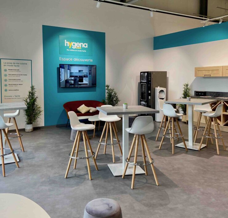 • En ligne & en magasin : le client choisit de débuter la conception de sa cuisine chez lui, sur hygena.com. Il peut ensuite se rendre en magasin pour finaliser sa commande (toutes les infos concernant le projet sont centralisées et partagées entre le client et le vendeur via un “Espace” dédié) et profiter de l’ensemble des services déployés en point de vente.