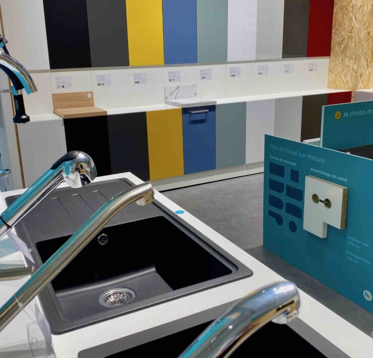 Côté offre, Hygena simplifie son assortiment de produits et propose une gamme courte, pour faciliter le choix des consommateurs : 22 façades et 100 références de meubles ; 16 coloris de plans de travail et de crédences sur mesure ; 40 références d’électroménager et 30 d’éviers et mitigeurs. Par ailleurs, tous les produits meubles, électro et sanitaires sont stockés, pour permettre une livraison en deux semaines au magasin et en trois semaines chez le client ; seuls les plans de travail et crédences sont fabriqués sur mesure à la commande.