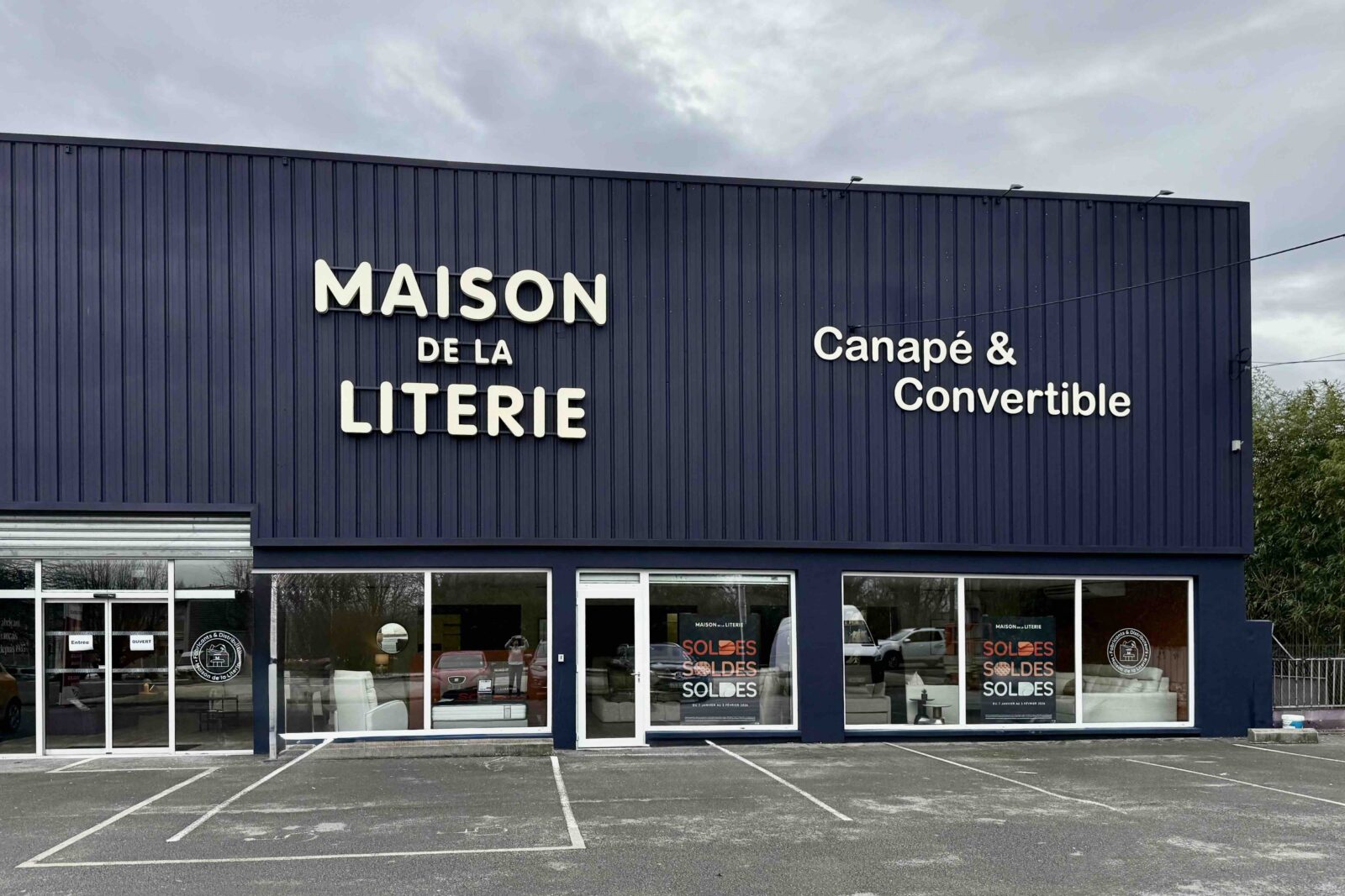 Historiquement situé au numéro 45 rue des Perrières, le point de vente a été relocalisé dans un ensemble commercial de 1 300 m2 réunissant plusieurs univers de l’ameublement. Maison de la Literie y exploite un espace de 300 m2, entièrement réaménagé selon son nouveau concept. Le magasin propose une vingtaine de literies et s’inscrit dans une logique de modernisation du parcours d’achat, avec un agencement destiné à matérialiser au mieux les différentes zones du point de vente et à renforcer la lisibilité de l’offre.